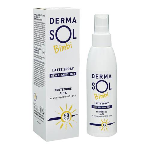 Flacone spray da 125 ml. Grazie al complesso di Vitamine e Pantenolo, Dermasol Bimbi Latte Spray New Ttechnology garantisce anche un’azione antiossidante e lenitiva.