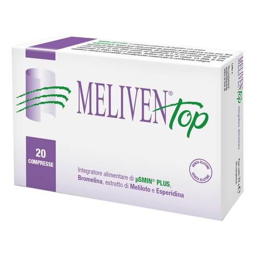 MELIVEN TOPDescrizione Integratore alimentare di µSMIN Plus*, Bromelina, estratto di Melilotus officinalis e Esperidina. Il Melilotus officinalis risulta utile per la funzionalità del microcircolo, per la circolazione venosa e per la funzionalità del plesso emorroidario. *µSMIN Plus è un marchio registrato di GIELLEPI S.p.A. Ingredienti µMIN® Plus (Diosmina micronizzata 80%); agenti di carica: cellulosa microcristallina, fosfato dicalcico; Bromelina 2500 GDU/g; Meliloto (Melilotus officinalis (L.) Pall., herba cum floribus) e.s. tit. al 20% in cumarine tot; Esperidina; agenti antiagglomeranti: sali di magnesio degli acidi grassi, b...